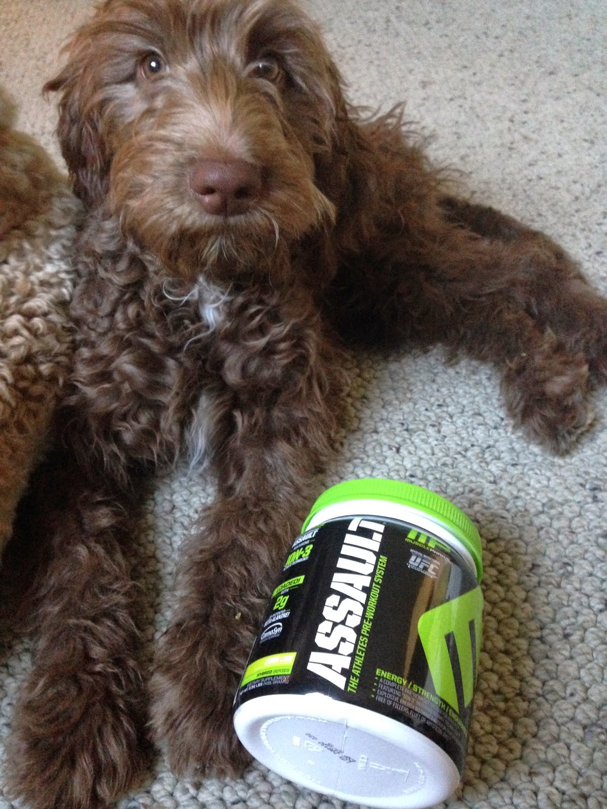 I swam 1500 m. afterward to lengthen my hip flexors after all those KB swings! I can probably attribute my ambitious workout to Assault. It’s a disgrace to not write Assault in all caps. ASSAULT is a supplement I discovered in my post-swimming life, while working out with Matt on our honeymoon cruise ship. I didn’t want to get off that treadmill overlooking the Mediterranean! Take caution while “on” ASSAULT. The superhuman things you do one day, you may pay for the next.