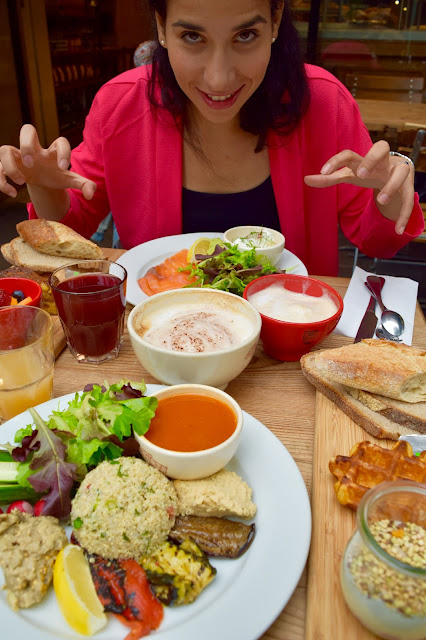 That’s maybe the prettiest Paris looked during the trip because of the way the morning light hit all of the familiar forms. Also, the city was still asleep, and the streets typically crowded with tourists were clear. We went to Sara’s apartment, dropped off my bags, and exchanged gifts before hopping in the car and grabbing a healthy brunch at one of Sara’s favorite cafes. I say healthy, but probably 50 percent of my “vegan” meal was bread.