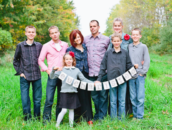 | Ann with her fam, holding a word you’ll know if you read any of her book… |