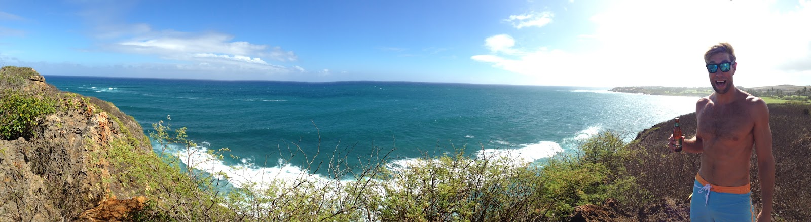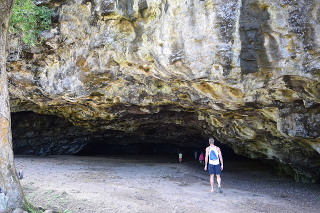 We were kicked out of the room at noon, but reassured there was a courtesy lounge for showers later and a room to store our bags away. We sat by the pool and let the food coma take over for a couple hours, then took off on one last hike down the southeast shoreline. The path is called the Maha’ulepu Heritage Trail and it extends quite a few miles beyond our hotel. We hiked along the cliff bluffs and soaked in the salty sea breeze, oh and some heavenly views. Matt brought his three remaining grocery-bought beers with to enjoy at trail stops and lookout points. He found a sea-smoothed rock to function as a bottle opener– maybe a cooler souvenir than the actual Tiki man bottle opener I bought him. We probably hiked 2.5 miles to get to the Makauwahi Cave Reserve. The hike wasn’t nearly as arduous as the steep canyon hike three days prior. And we were prepared this time! With water, nuts, and…beers. 😉