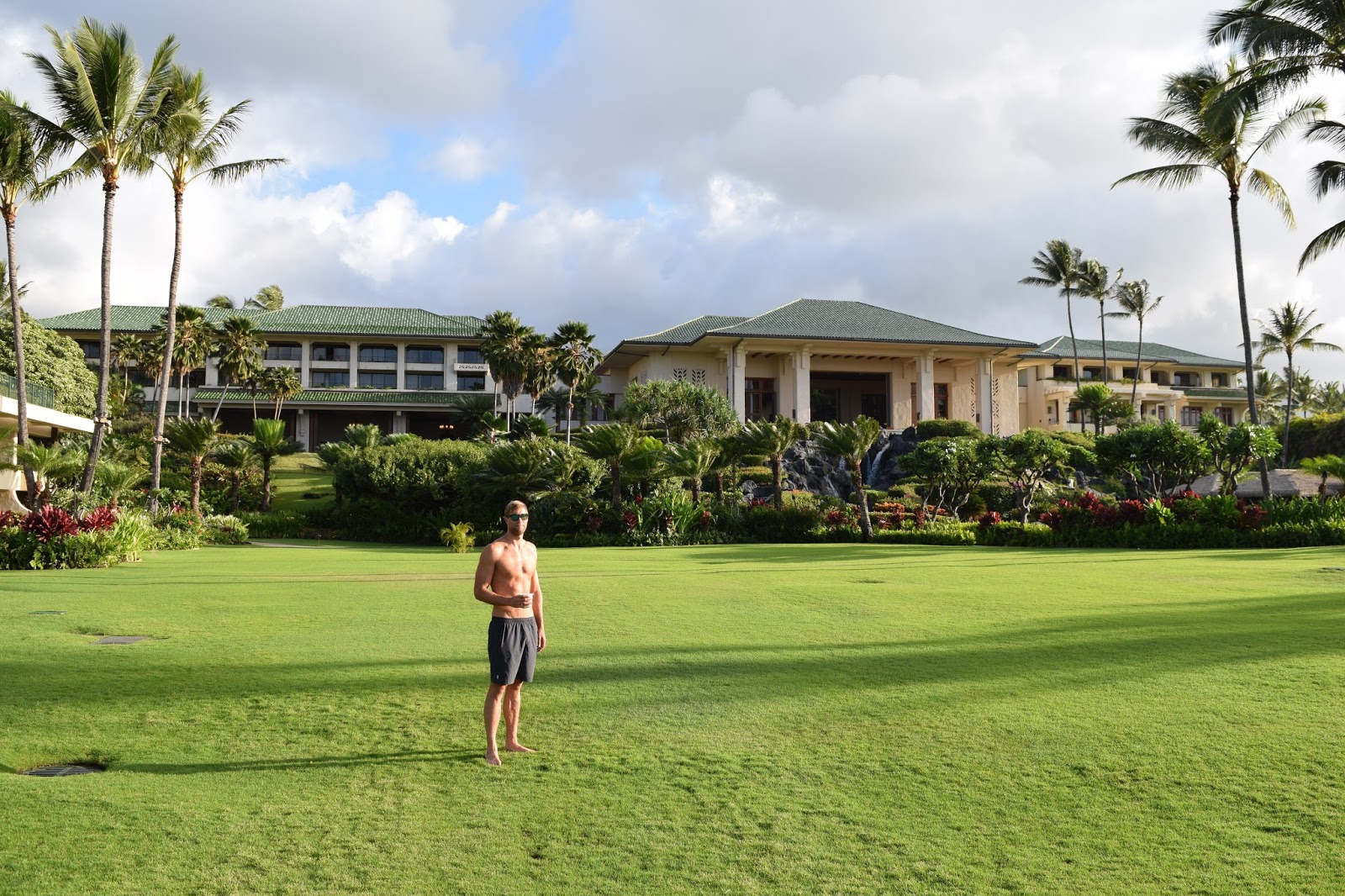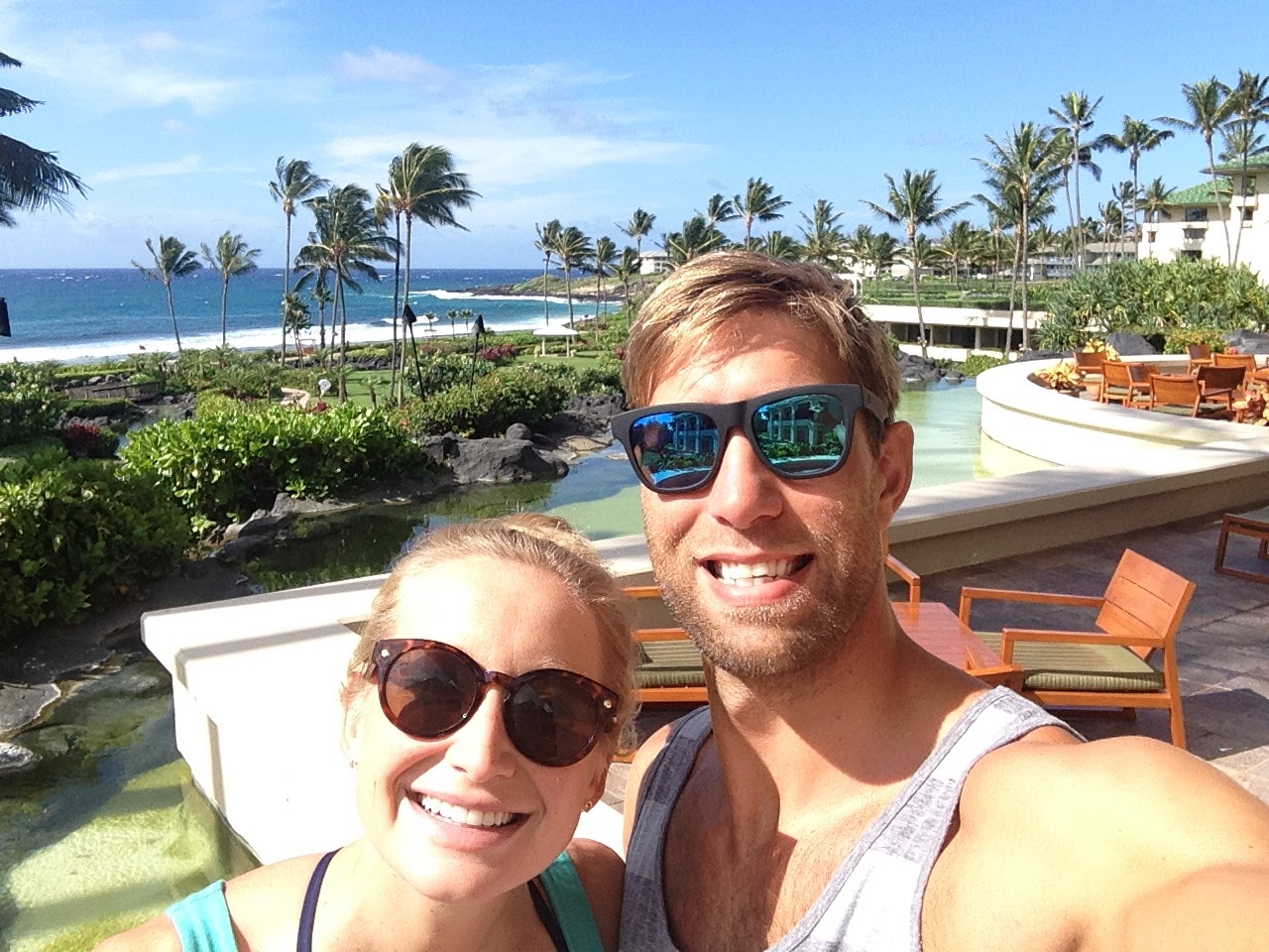 We arrived at the Grant Hyatt in Poipu and were welcomed with a lei and kind words from Ronald, the concierge. He also gave us the fantastic news that our room was on the first floor, with immediate access to the lawn leading to the pool and the beach…this was actually incredible news because we booked with points that were only guaranteeing we would have a room overlooking the front parking lot. So I think our friend at the Hyatt Hill Country in San Antonio (where our wedding was) pulled some strings and hooked us up with this room.