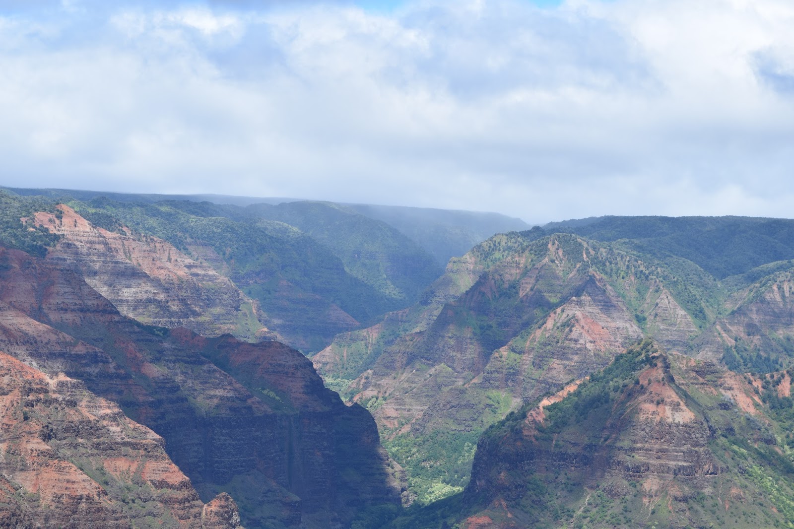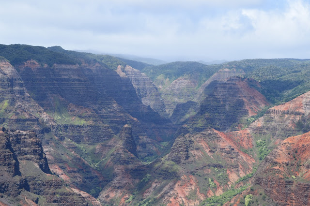 I spent some time shopping in the cute stores within the small town that is the Kauai Grand Hyatt, then spoke to our concierge about the best places to snorkel. I was thinking the water might be murky for the rest of the trip, but he seemed to think we could still have luck. After speaking to a number of hotel employees, I was convinced we needed to go to Waimea Canyon, or their “little Grand Canyon” while here. Around noon, we headed west toward Waimea State Park. We wound up a curvy road to 3500 feet and took in some of the most breathtaking views of the trip (right there with sights of the Na Pali Coastline). I won’t even try to describe Waimea Canyon– just take a gander…