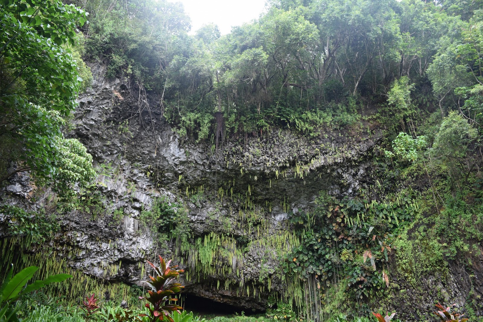 We continued our trek northward. The roads became windier, more jungly, and we had to get used to yielding to oncoming traffic due to one-lane bridges. We stopped at the dry cave just past Tunnels Beach, and parked right across from it. The Manini-holo dry cave was expansive, definitely a nice place to set up camp if you don’t fear the mountain crashing down on you.