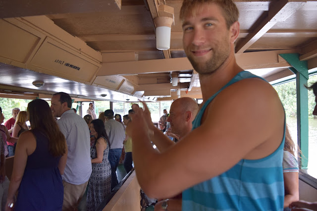As Matt opened the door to head out, a sweet hotel employee cheerfully greeted him “Aloha!” with a platter of elegantly sliced pineapple and two Pelligrinos. We needed to leave and I thought this was some afternoon fruit service we’d been missing out on, but when we asked if she could come back, she said “Well, someone sent this to you.” hah. I felt like a spoiled brat. We said thank you and sat on our patio as we went primal on this pineapple delivery. Turns out it was from Nicole Garza, our incredible wedding coordinator from the Hill Country Hyatt in San Antonio. After scarfing the juicy gift, Matt and I rushed up to the car, stressed we were going to miss our river tour. We ended up arriving in the last possible four minutes. The first person we saw when boarding was Bryana, our engineer friend from the catamaran the night prior!