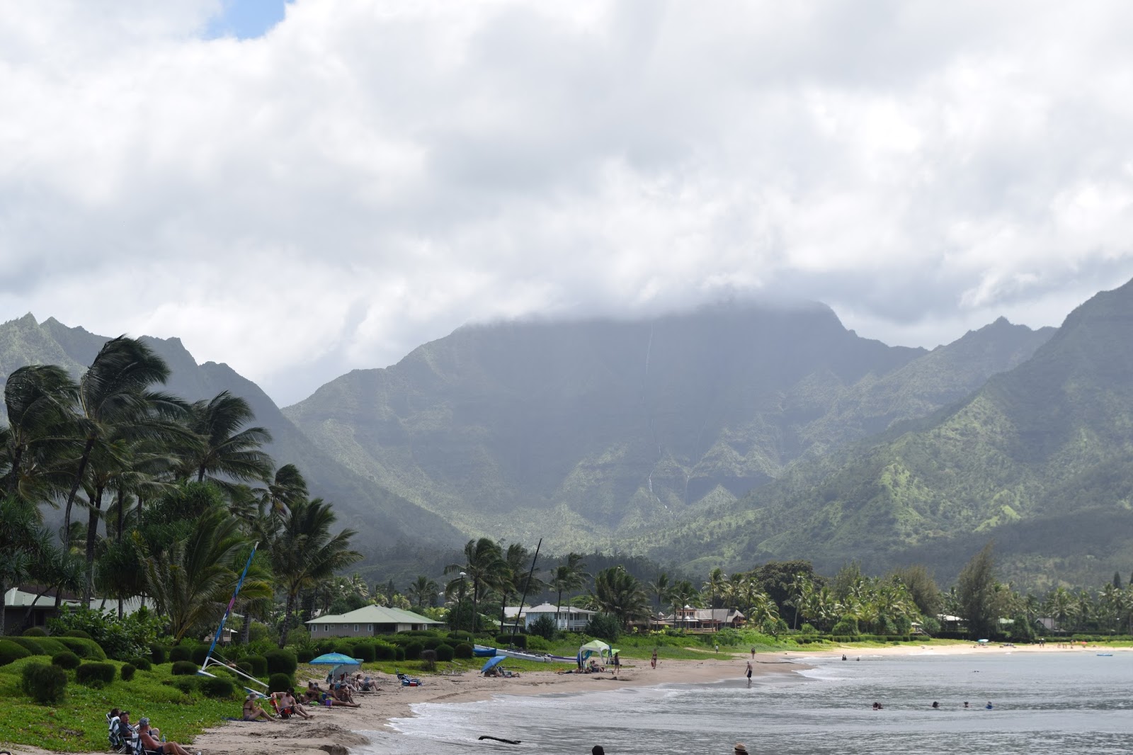 We walked across the street to Ha-ena Beach Park and then walked toward Tunnels Beach— which is reputed to have stellar snorkeling. We walked quite a way, then started to round the eastern tip of horseshoe-shaped beach and were instantly wind-pelted by furies of sand. We weren’t about that, so we decided to go back to the wind protected zone and try out snorkeling there. The under current was, again, extremely strong. It was much easier to float on the surface than put a limb a foot down into the water and fight the current. I did feel like the Finding Nemo turtles riding the current underwater at several points…”duuuuude”. We saw a turtle friend and some fish friends, then allowed ourselves to drift north, back up the shoreline.